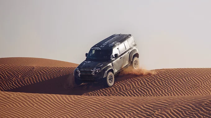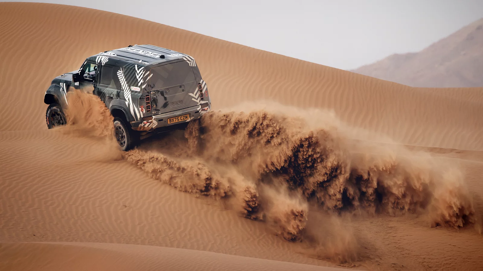 efter at have gennemført en hård test af Defender Dakar D7X-R i Marokko, Afrika.